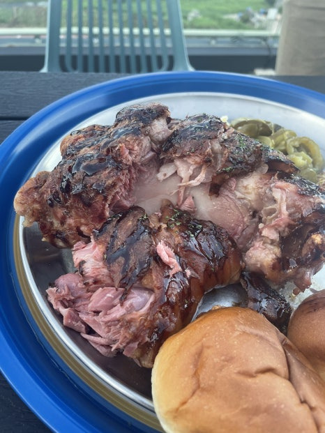 캬~~~ 보이나? 이 아름다운 고기의 느낌이? 그리고 잘랐더니 딱 야들야들하게 살들이 익어서 자르자마자 저렇게 먹어질 준비를 하는 것!