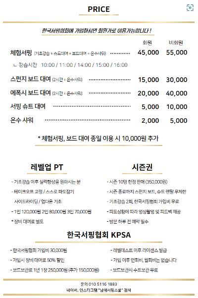 남해 서핑스쿨도 남해 말고도 다대포 서핑스쿨, 양양 낭만비치 등을 운영하고 있으니 참고하자.