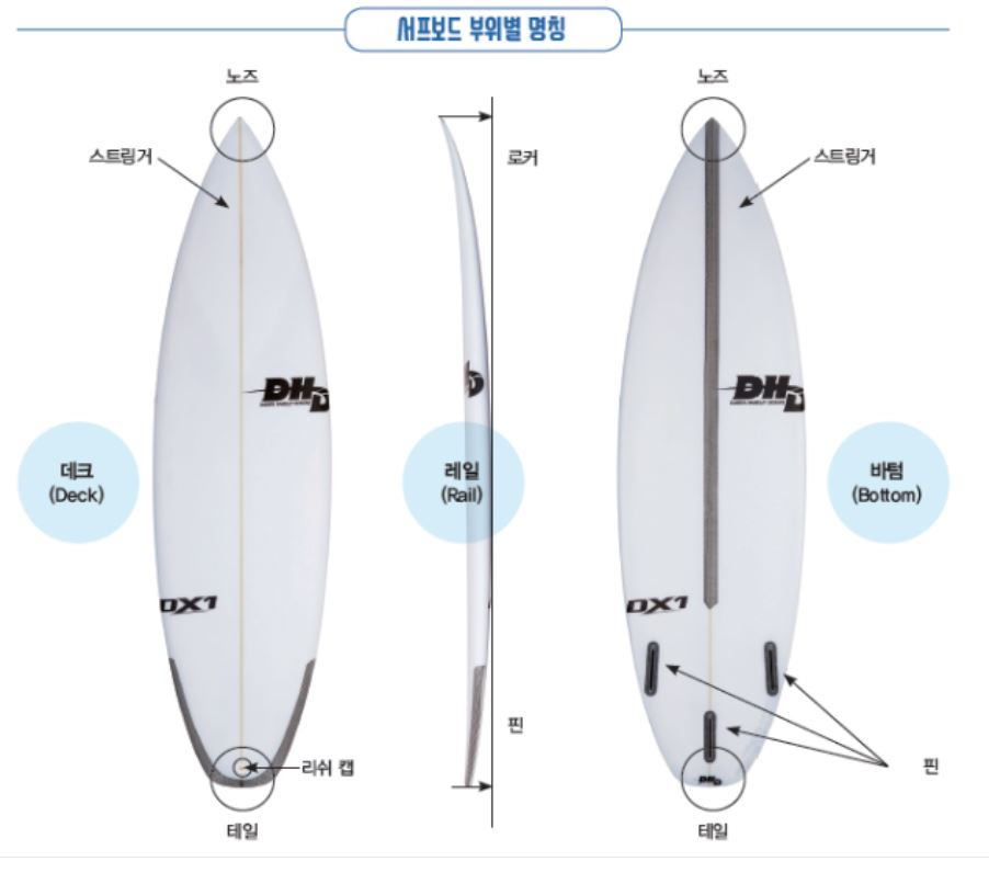서핑마다 모양이 다라서 뽀죡하고 뭉뚱하고로 기억하면 헷갈리기 쉽다.