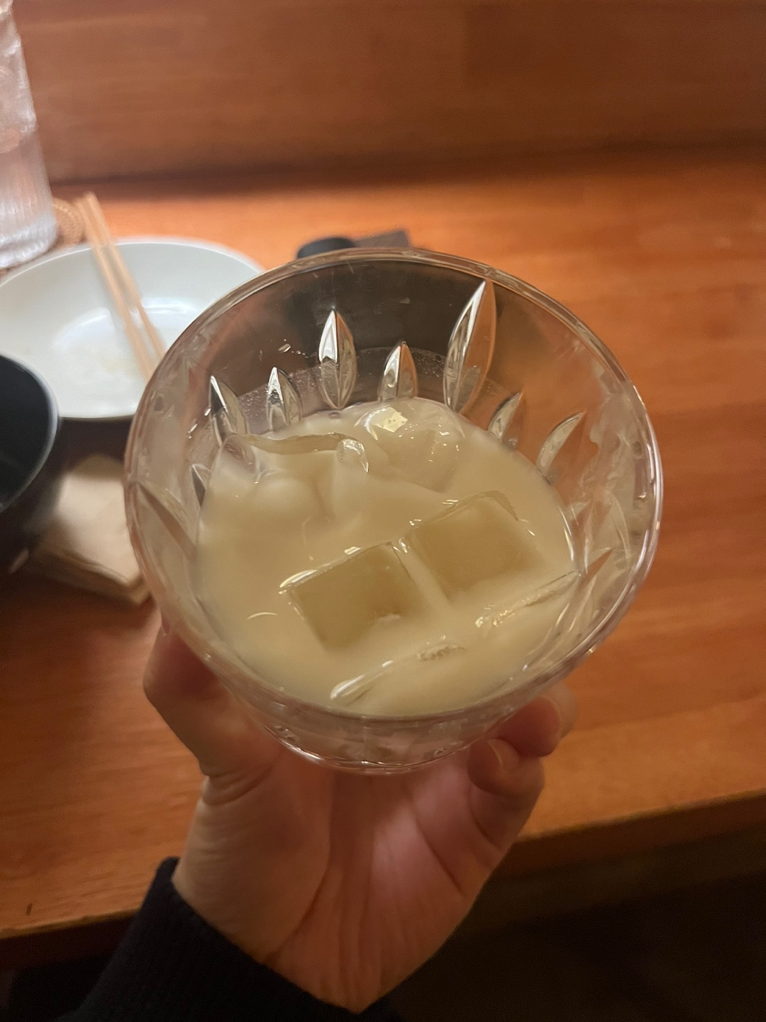 그리고는 히노키에 있는 술을 편백나무 향을 맡으면서 마시는 건데요. 그래서 보통 잔에 넘치게 따라 줍니다(양이 많아지기 때문에 개이득).