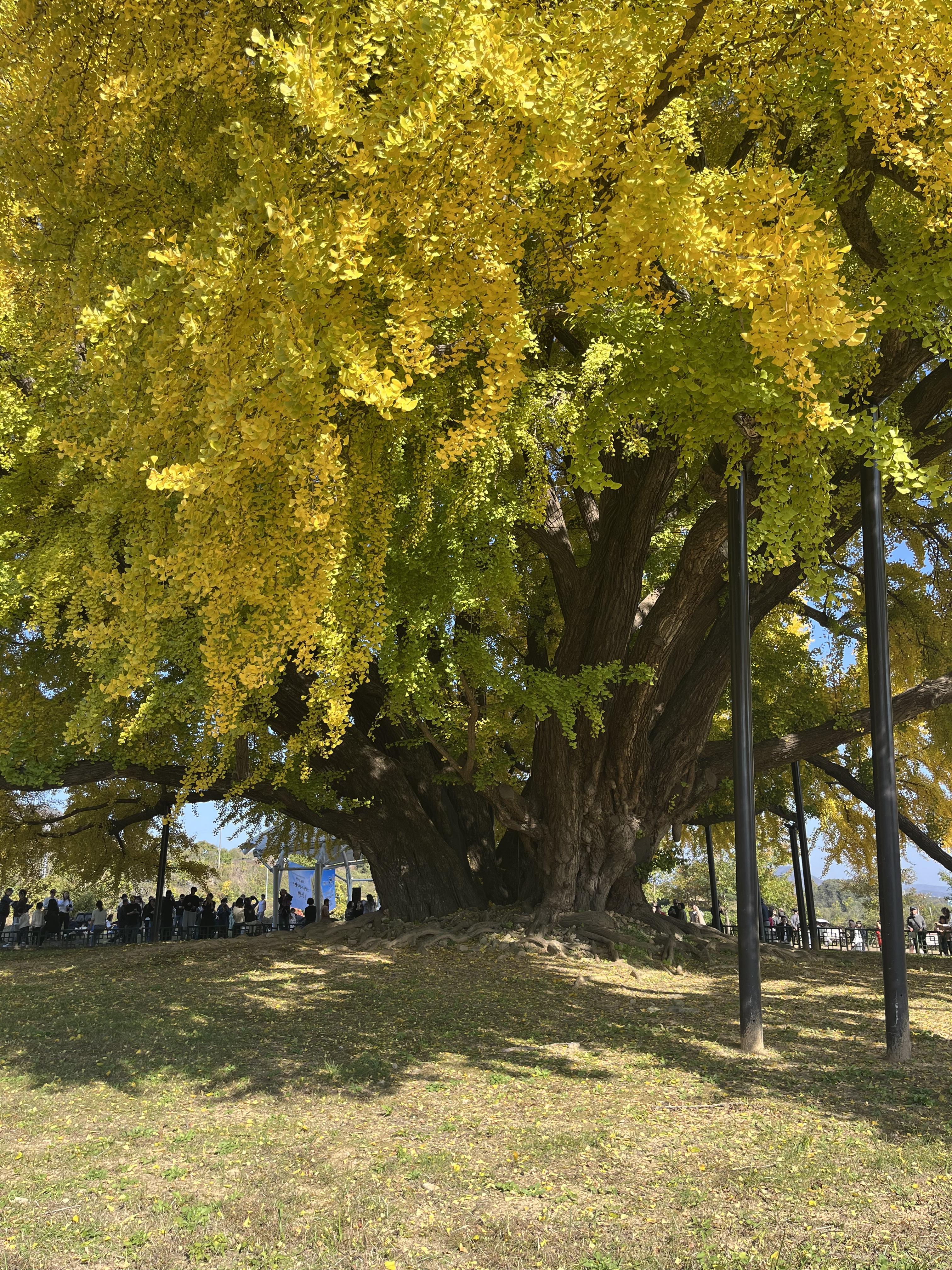 아직 완전 샛노랗게 단풍이 들지는 않았지만 천연기념물 답게 딱 보는 순간 입틀막 되는 크기에서 나오는 멋짐과 잎 하나하나가 생기가 있어서 나오는 아름다움이 있습니다.