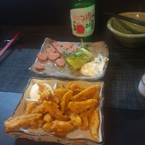 (좌) 명란구이와 닭연골튀김 (우) 내가 찍은 닭연골튀김