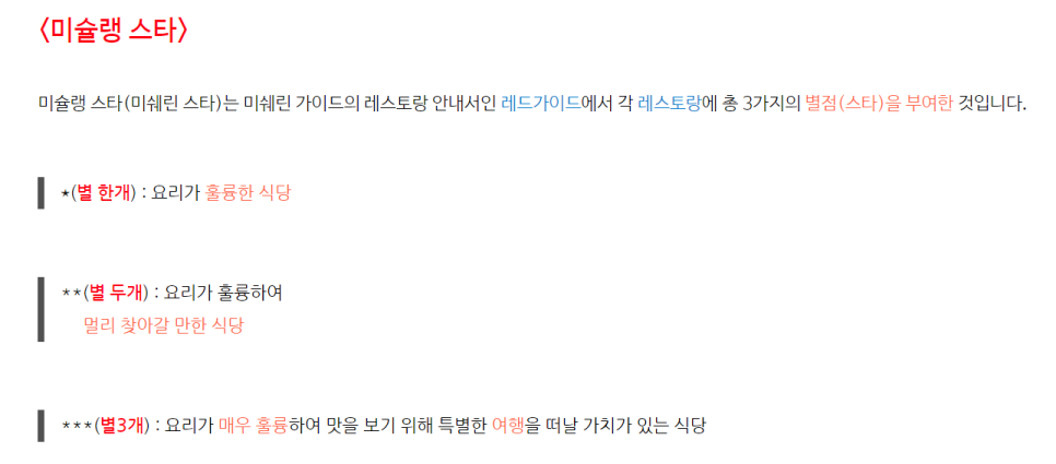그럼 미슐랭 가이드의 점수에 대해 알아보자.