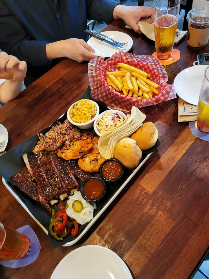 - 스위트오크: 미국식 바베큐의 진수입니다. 맛은 굿굿굿 입니다. 여기는 4시반부터 가서 대기하는 걸 추천합니다. 왜냐하면 그날만 있는 한정 메뉴인 Beef Ribs가 순식간에 동나기 때문입니다. 가자마자 무조건 이것부터 사이즈 맞춰서 시키고 그 다음은 알아서 드시고 싶으신 걸 추천드립니다. 저희는 4명이 가서 Beef Ribs XL에 PIT Platter 시켰습니다. 훈연 바베큐이고 다들 깔끔하고 고급스럽게 나옵니다. Beef Ribs는 몽탄의 우대갈비를 생각나게 하는데 맛의 깊이는 한수 위라고도 생각이 듭니다. 이 곳에 필적할만한 곳은 돈스파이크의 Low&Slow 정도 밖에 생각이 안나는데 Beef Ribs와 Spare ribs는 스위트오크가 승리. 그 외는 Low&Slow가 승리. 또 따진다면 저는 서울살기에 가기 쉬운 곳은 Low&Slow 하지만 예약이나 대기 등을 고려하여 먹기 쉬운 곳은 스위트오크. 원주간다면 한번쯤은 먹어보기를 추천. 이상 재슐랭 점수 4/5