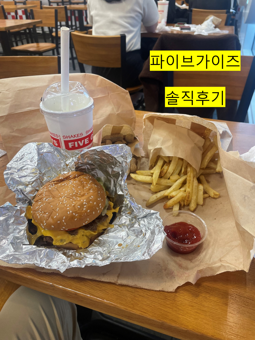 근데 파이브가이즈 햄버거는 특별할 것 없습니다. 평범합니다. 근데 가격이 비쌉니다. 즉 가성비가 똥이라는 것입니다. 솔직하게 말해서 버거킹보다 맛있다고 하기도 힘들 듯합니다.